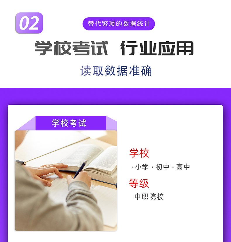 主要應(yīng)用于學校,培訓機構(gòu),職業(yè)鑒定站,考試評卷、考試報名、多行業(yè)的測評、考核、選舉